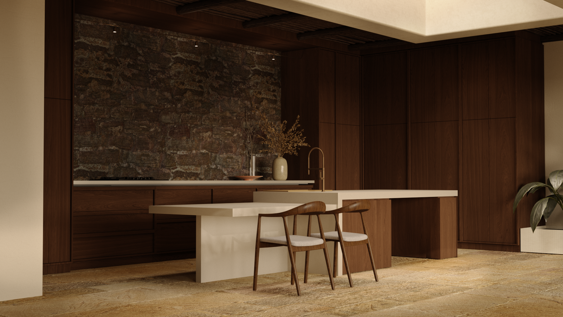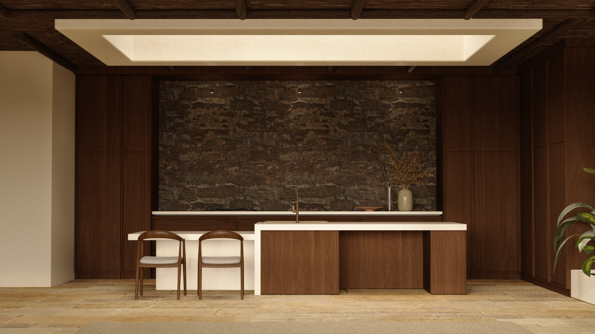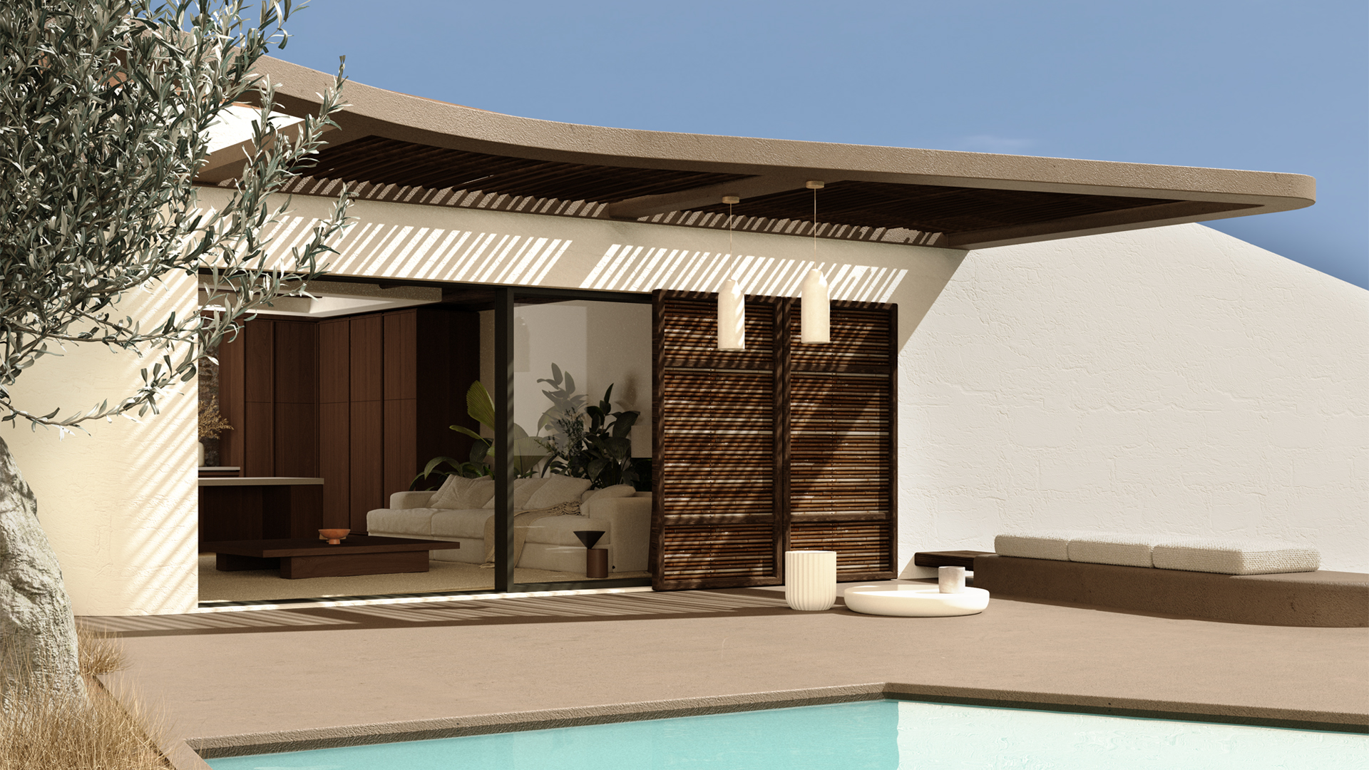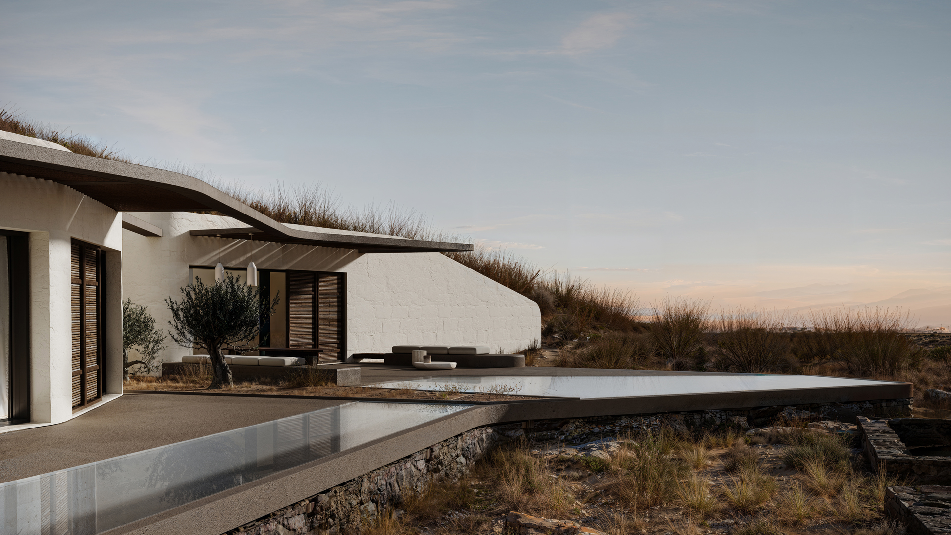 In the context of the architectural proposal, our team set as fundamental goals of the creative and design process the total harmonization and integration of the houses in the natural environment of the island, in combination with the creation of spaces that show absolute flexibility. This is why we opted for a free layout of the living areas and the free placement in the center of central elements of the interior configuration, such as the kitchen island, the living room sofa, or the beds.